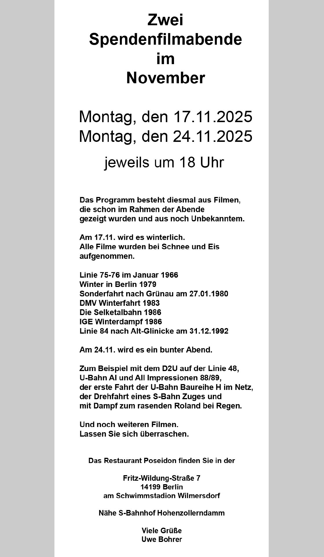 Staionen sind 2004 bei einem Eisenbahnfest und 1993 zur 100 Jahr Feier der Strausberger Eisenbahn.